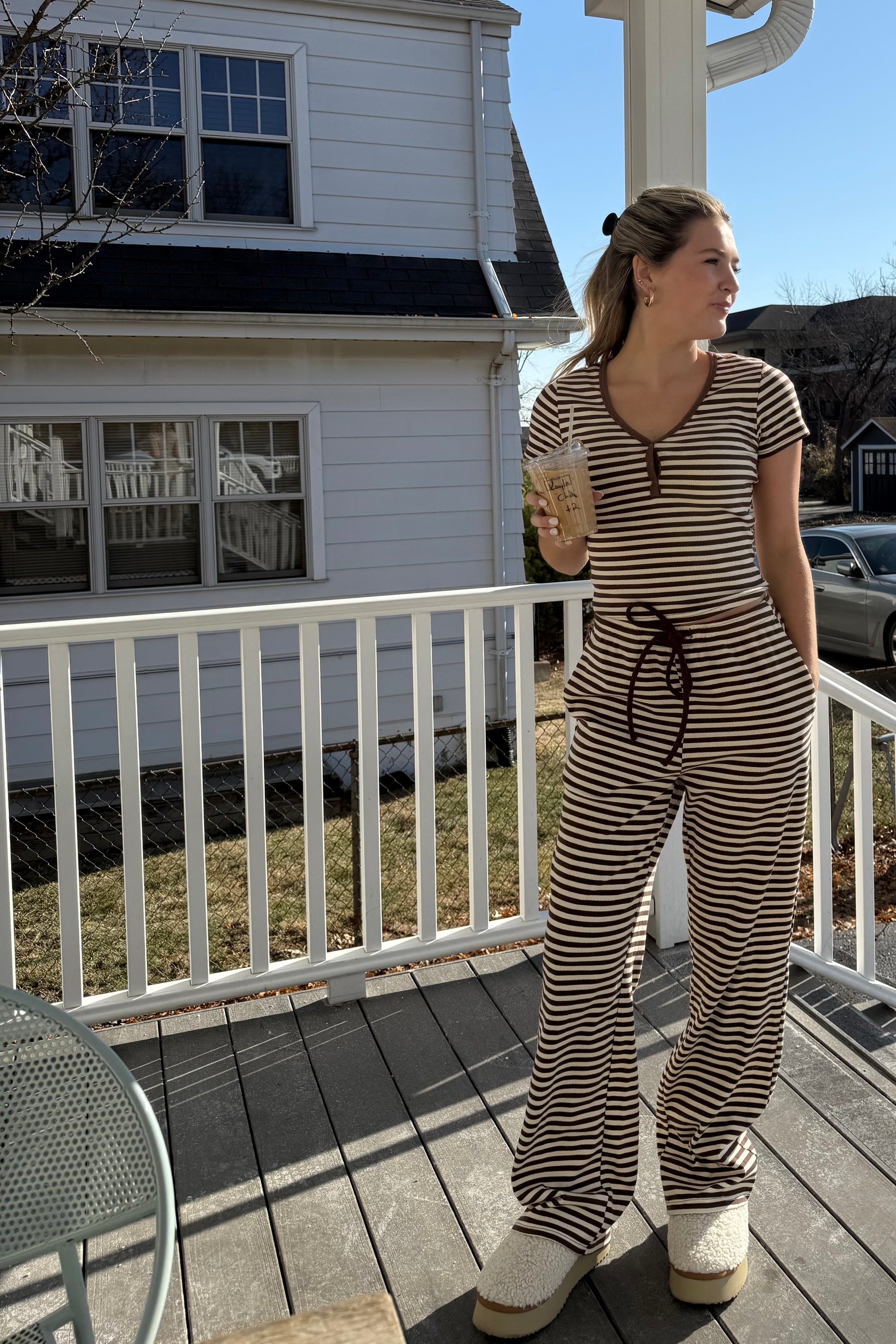 Chocolate striped set. Soft, lightweight & breathable fabric.