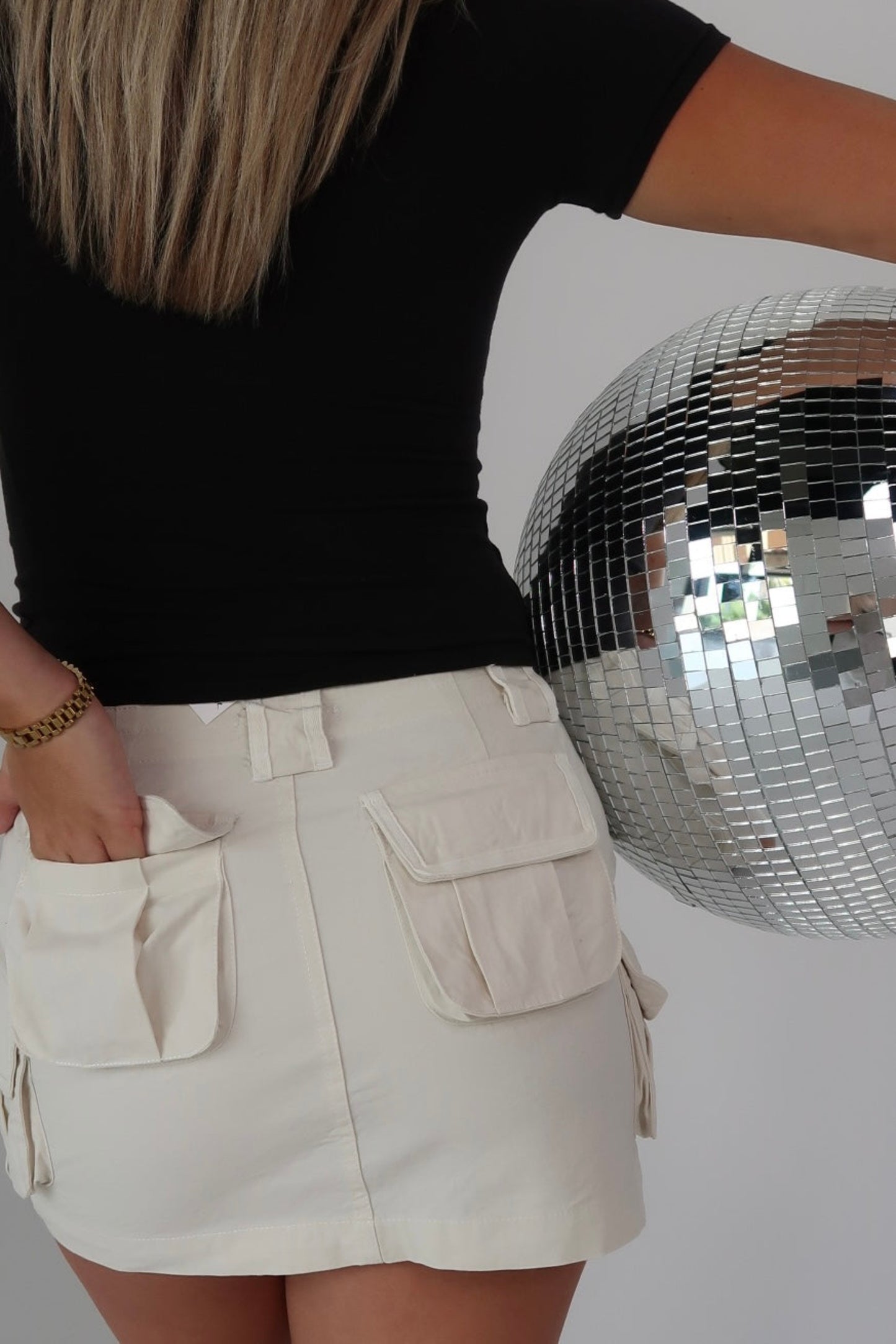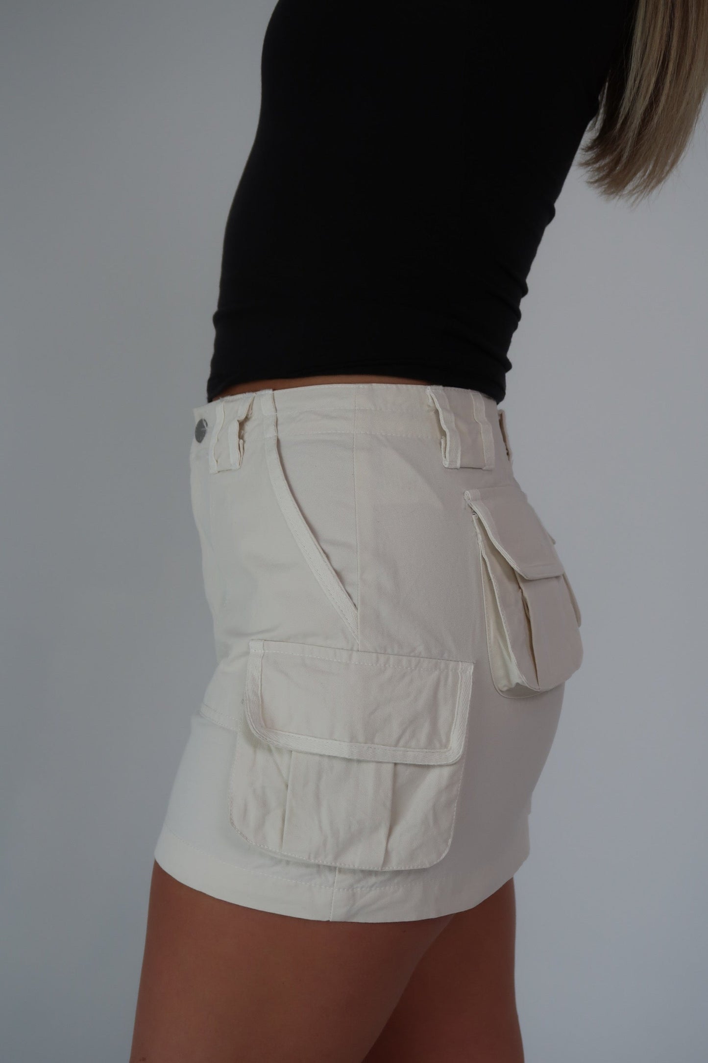 - cream cargo mini skirt