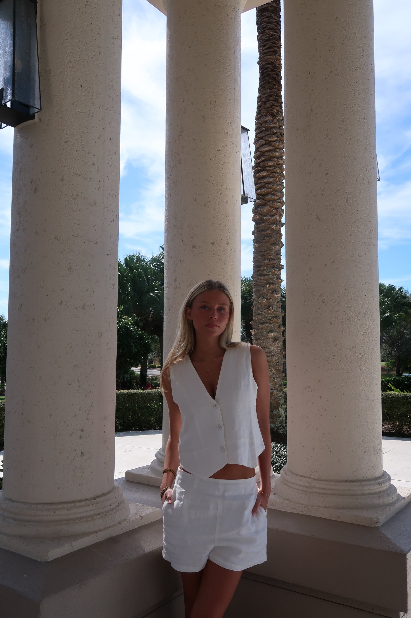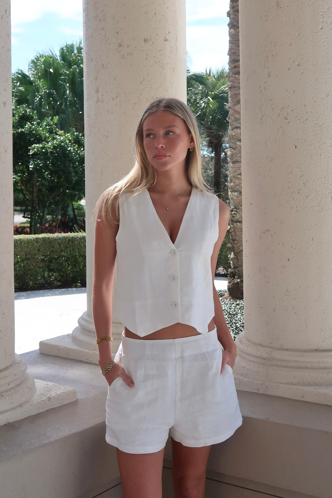 - white linen shorts