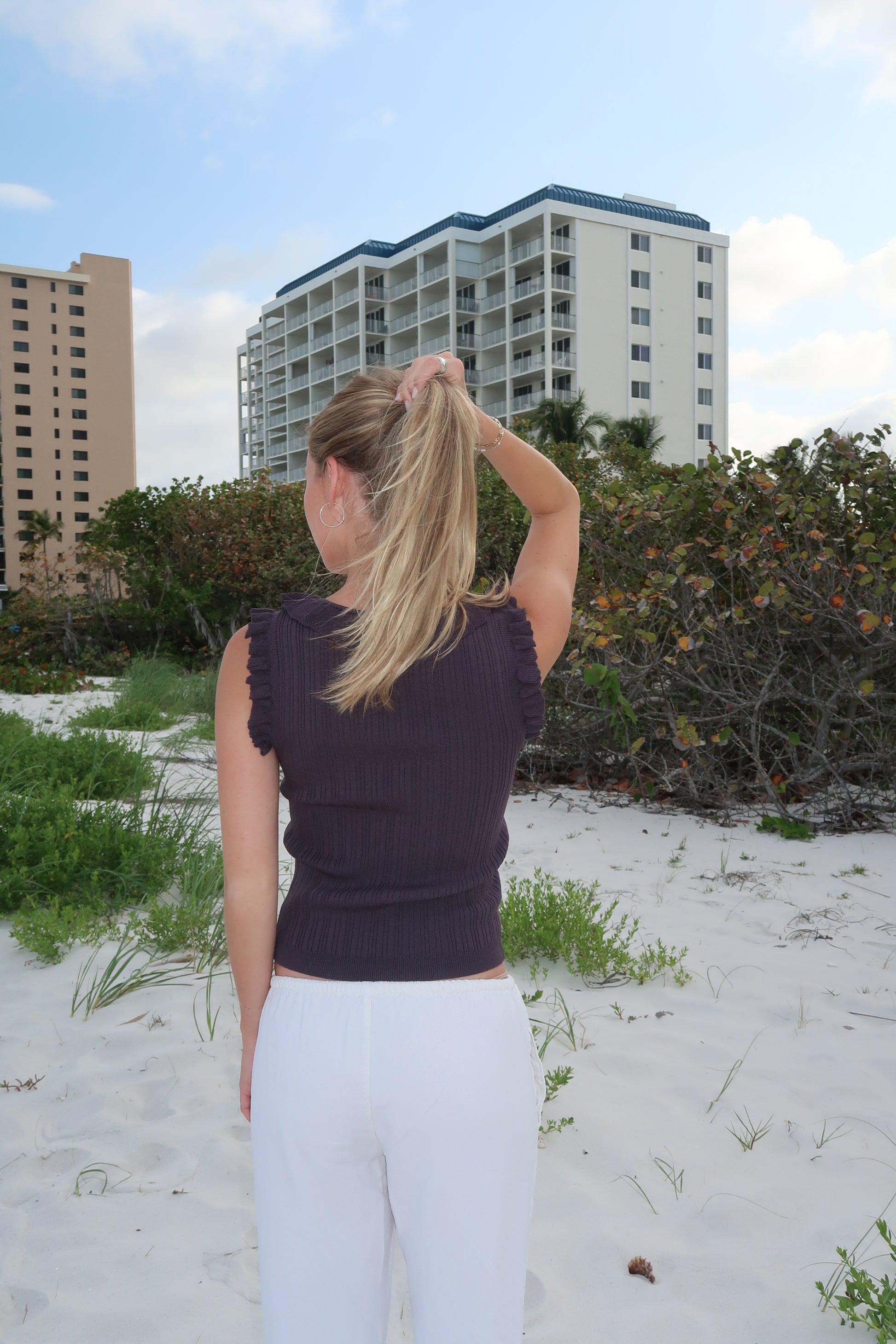 Knit V-neck top with ruffle trim. Soft, comfy, & perfect for dressing up or down—this top is ready to take you from casual days to cute nights out!