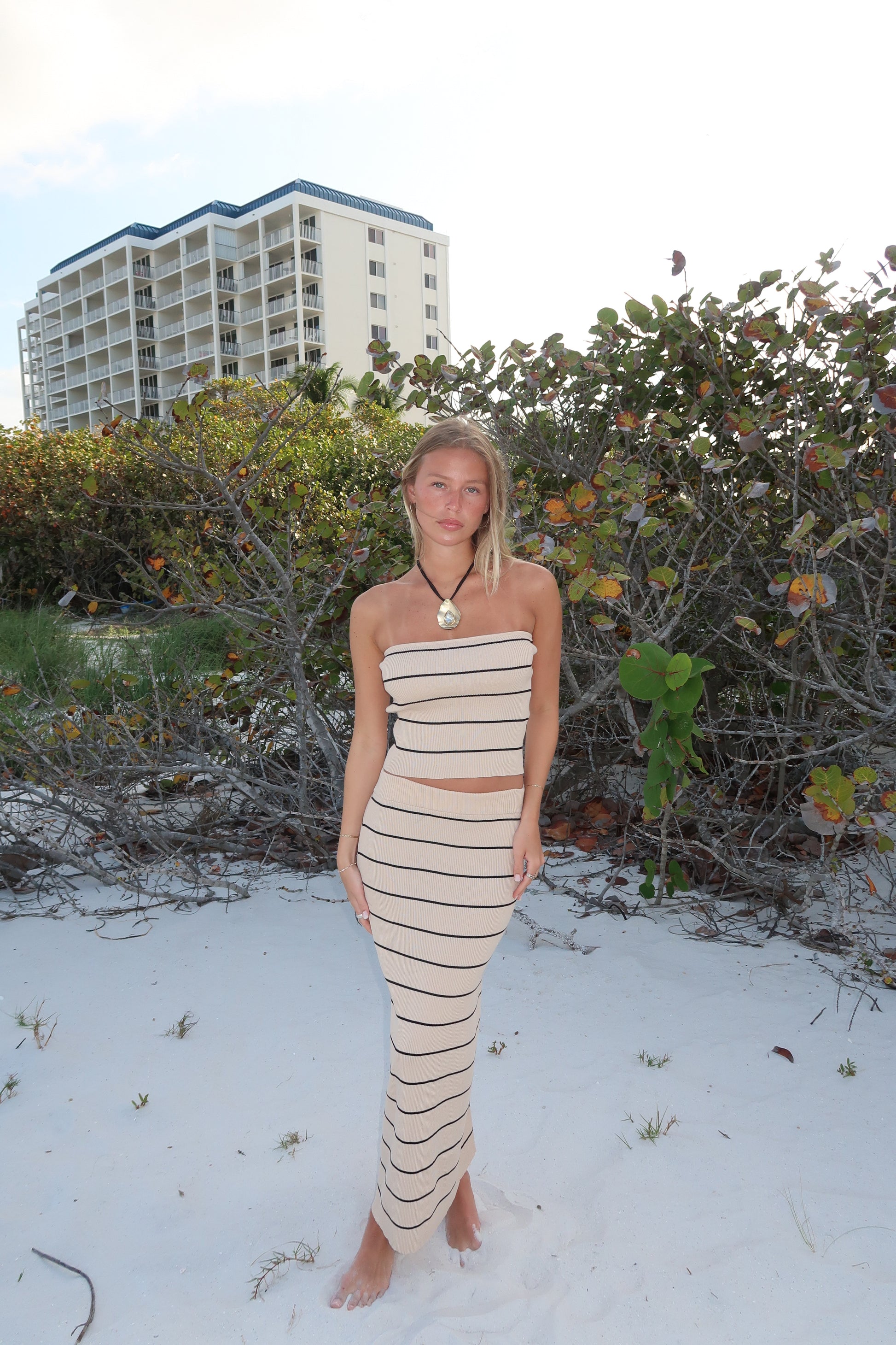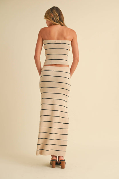 Striped tube top & skirt set. Stretchy fabric providing comfort.