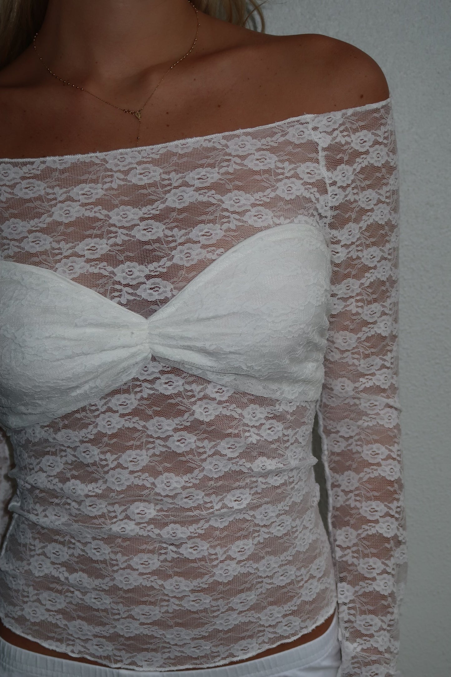 - off the shoulder sheer lace long-sleeve