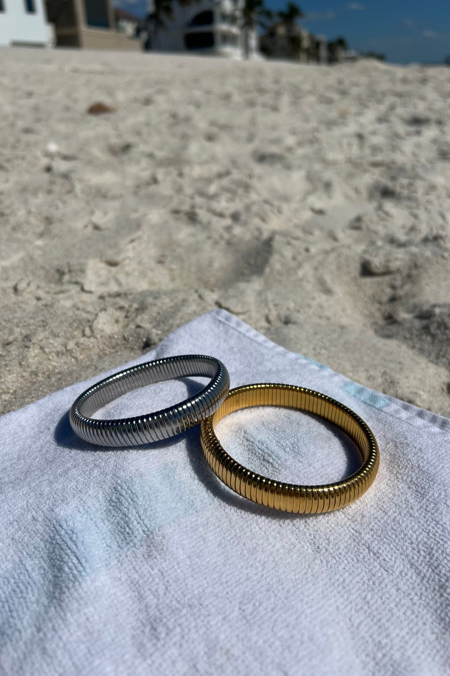 This semi-stretch cobra ribbed bracelet is crafted from high-quality stainless steel for a beautiful, glossy shine that won't fade over time. Its semi-stretchable design provides a personalized, comfortable fit that won't let you down.