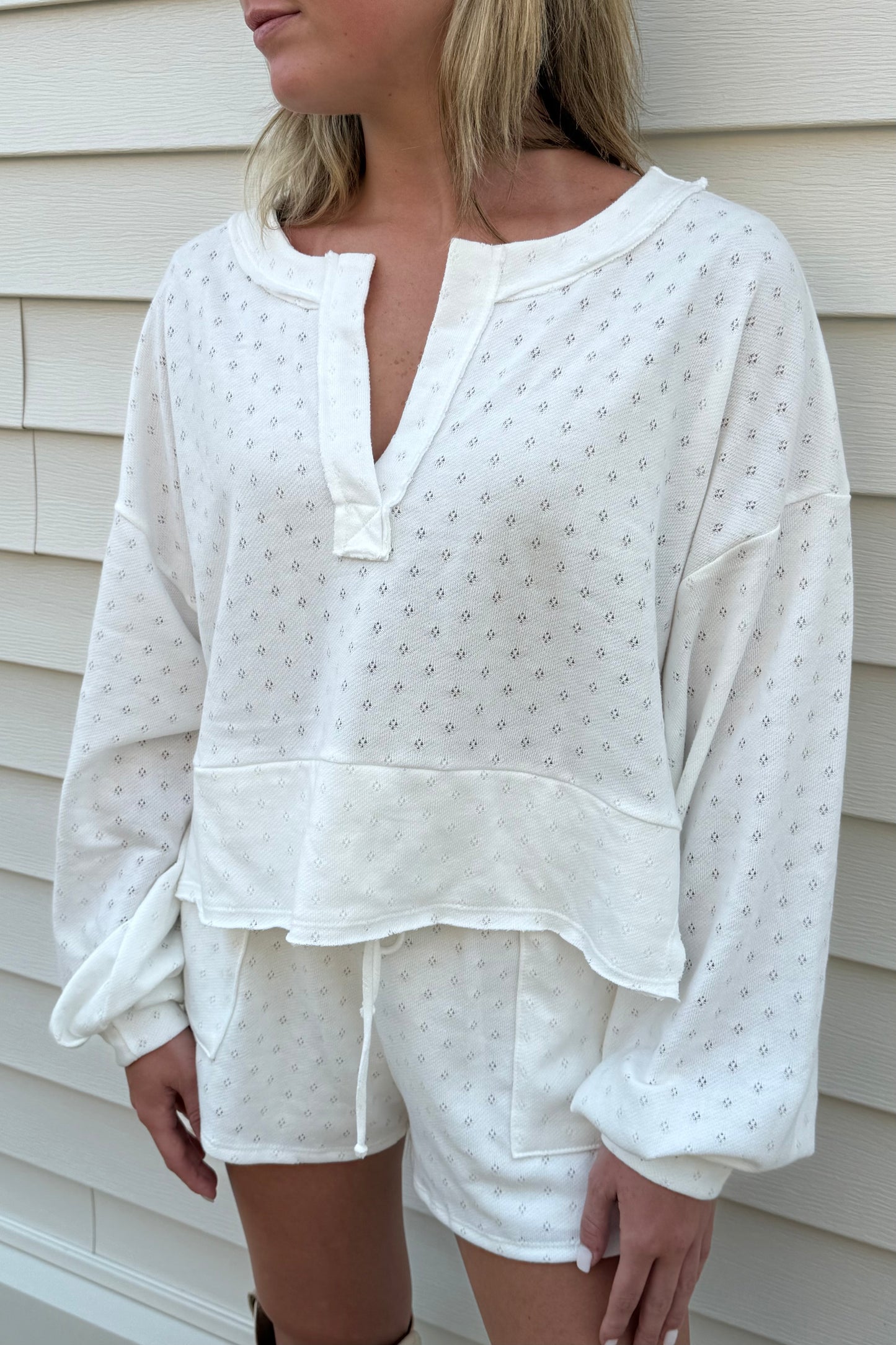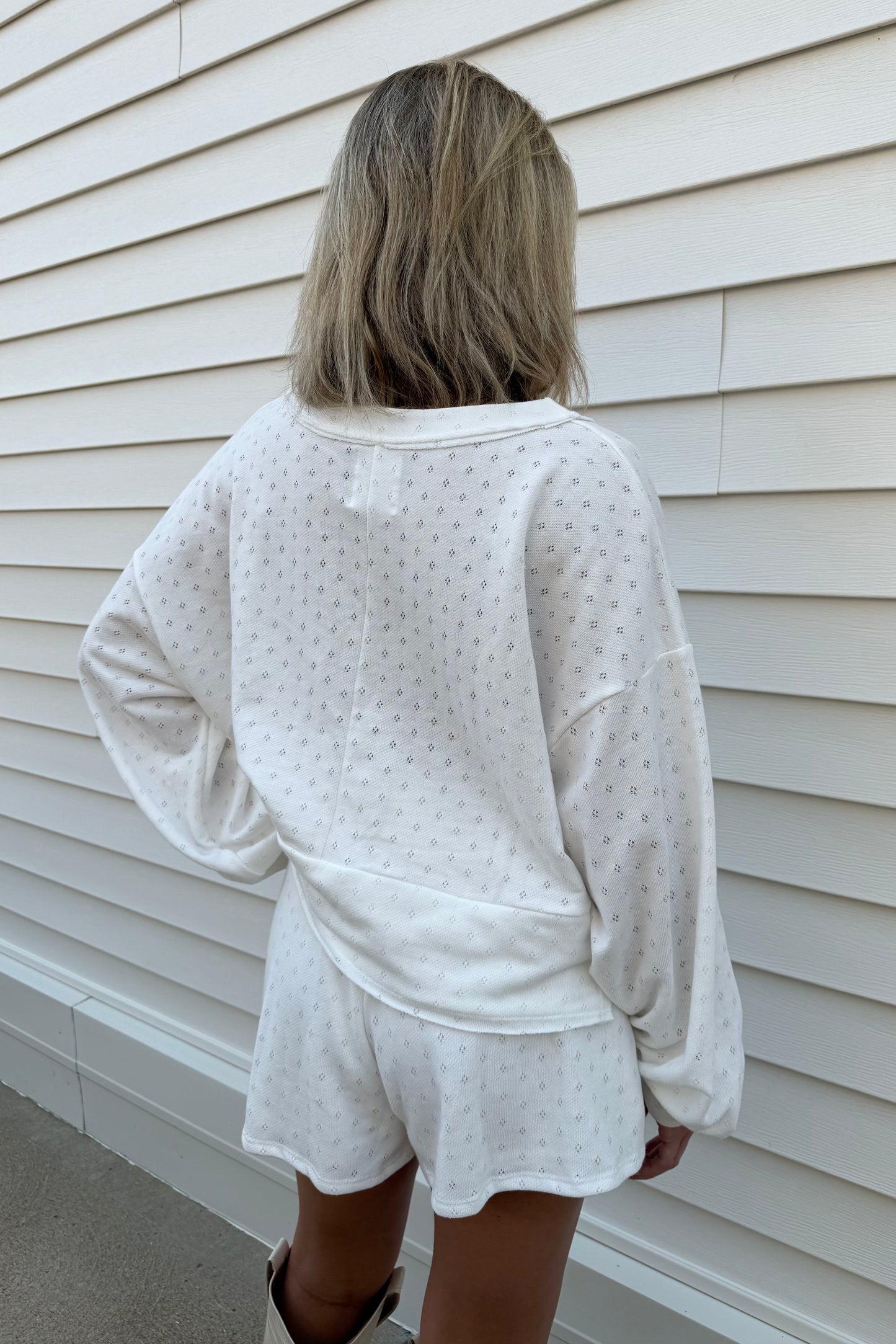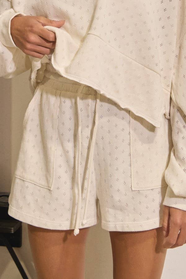 Pointelle fabric matching long sleeve shirt & shorts set.