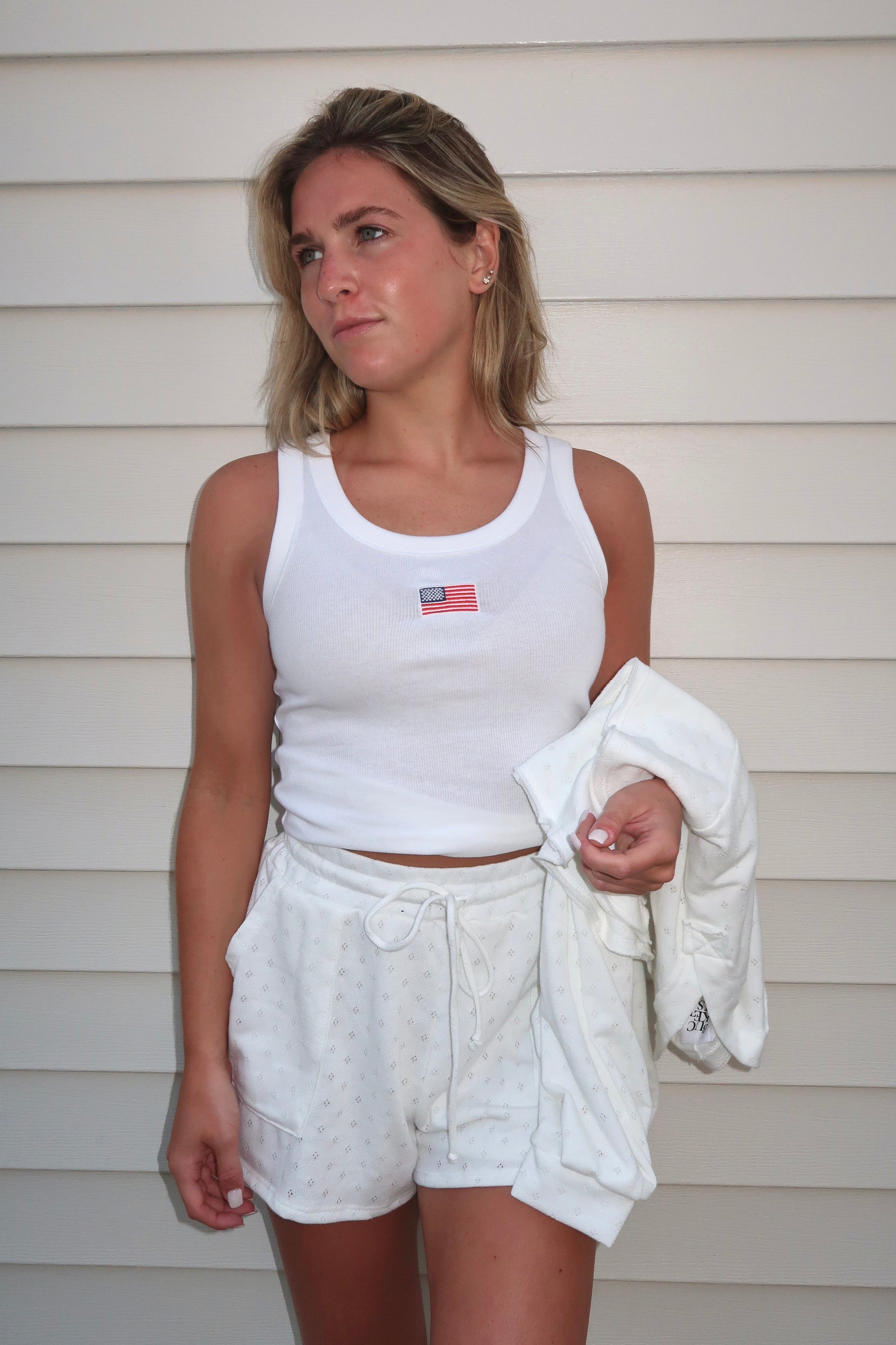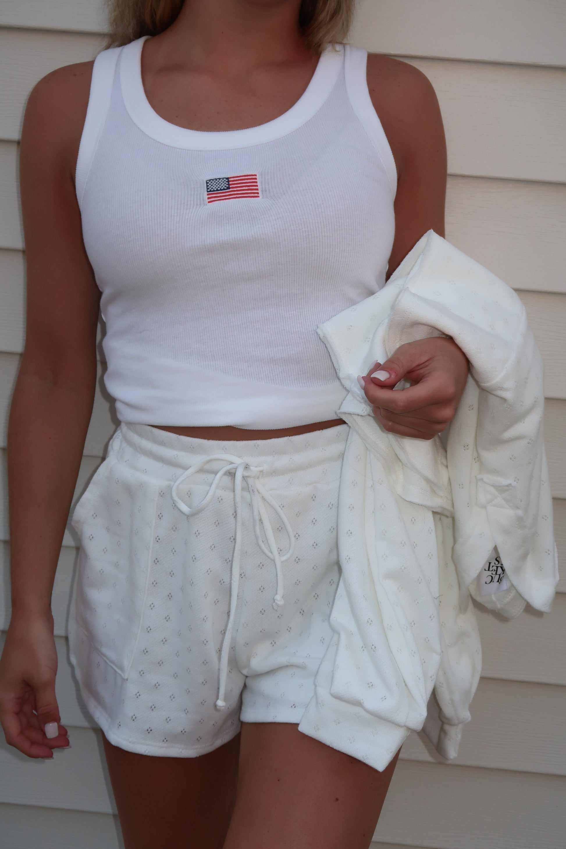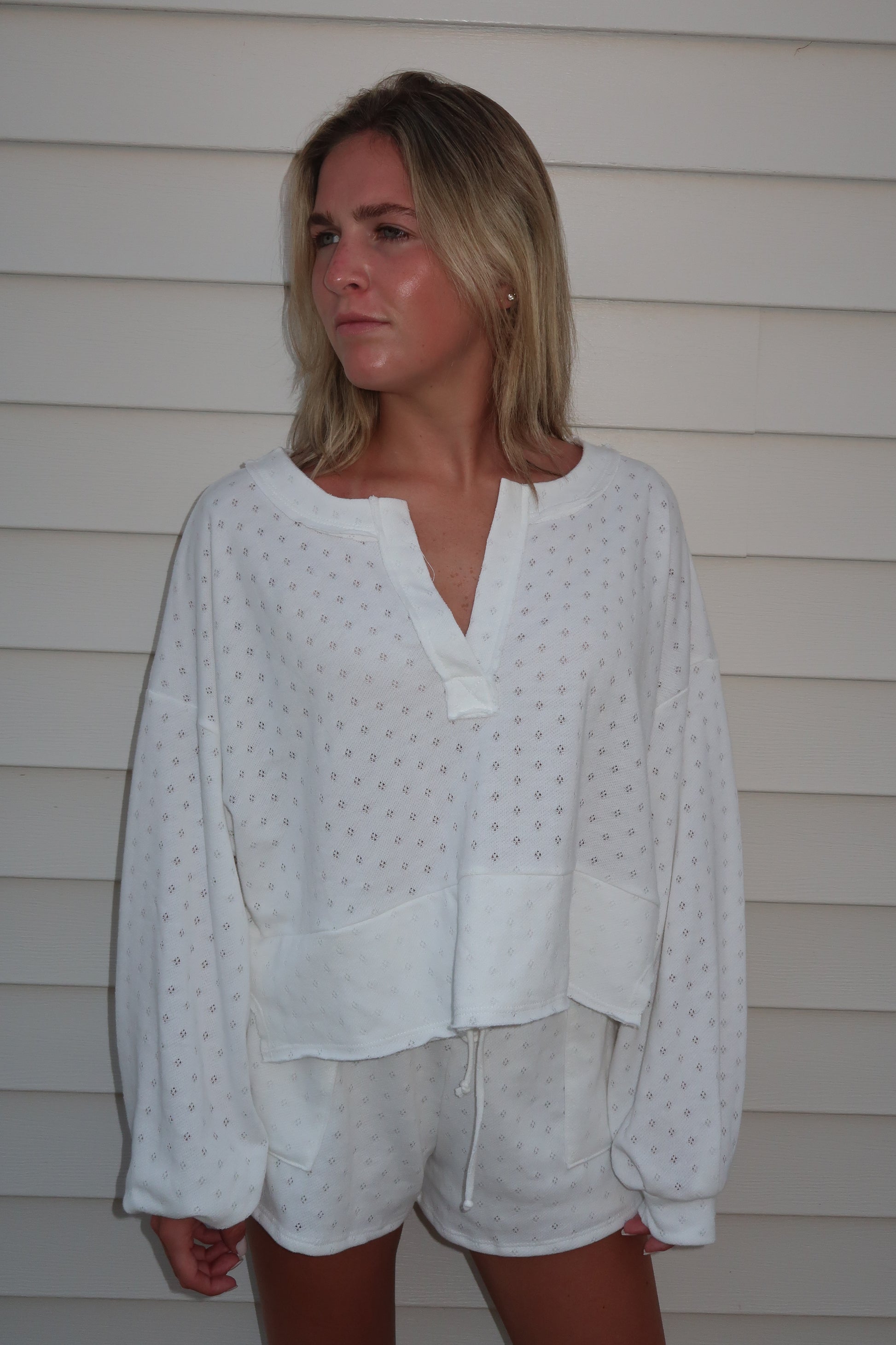 Pointelle fabric matching long sleeve shirt & shorts set.