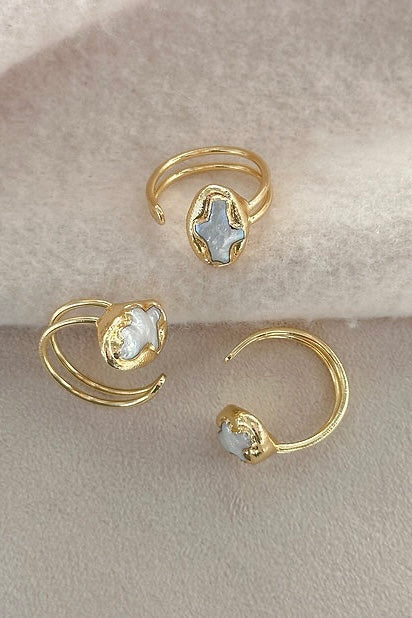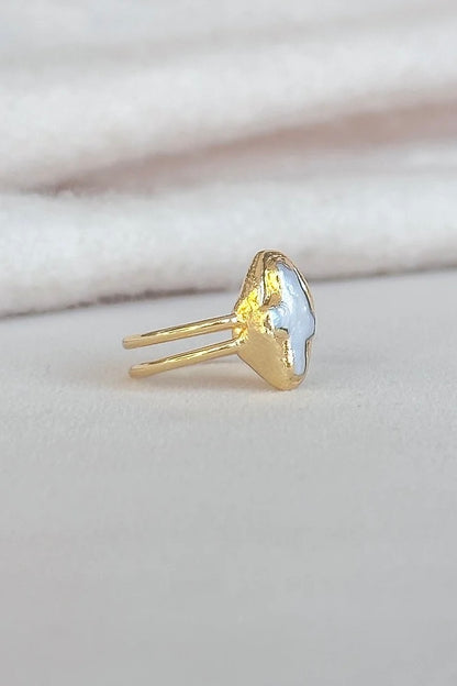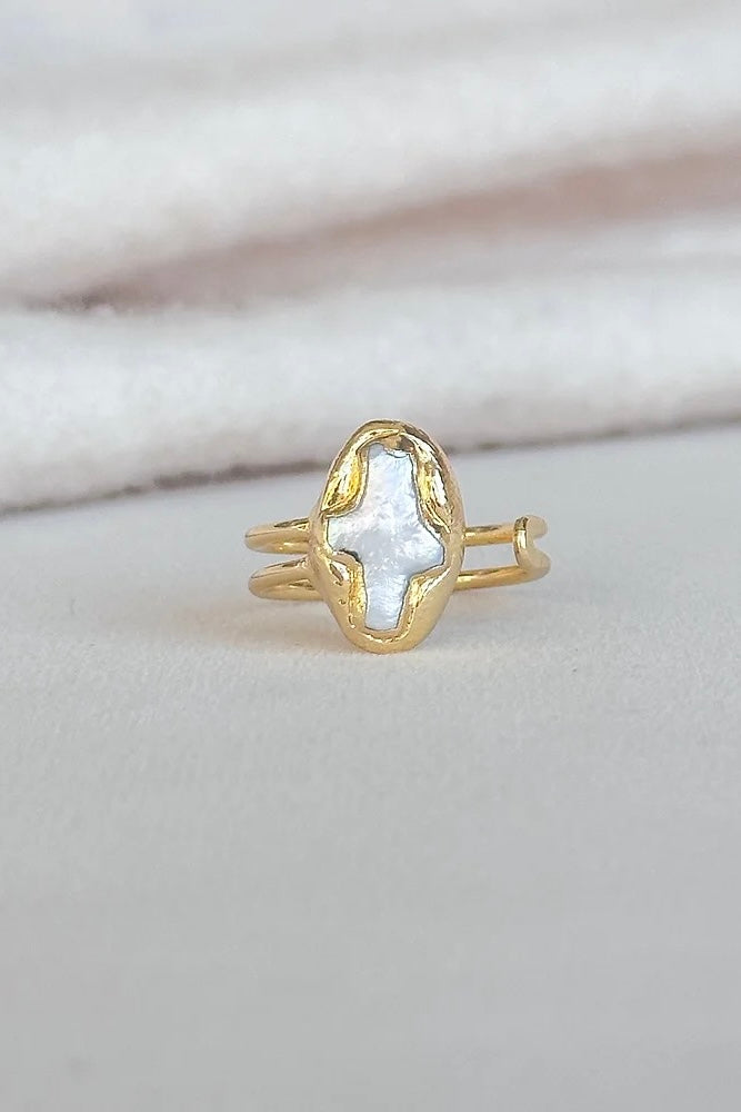 Elevate your everyday look with our stunning Pearl Cross Ring, featuring an 18k gold plated band & freshwater pearl cross. This timeless piece is designed to be completely adjustable, making it the perfect option for those who struggle to find the right fit with traditional rings.