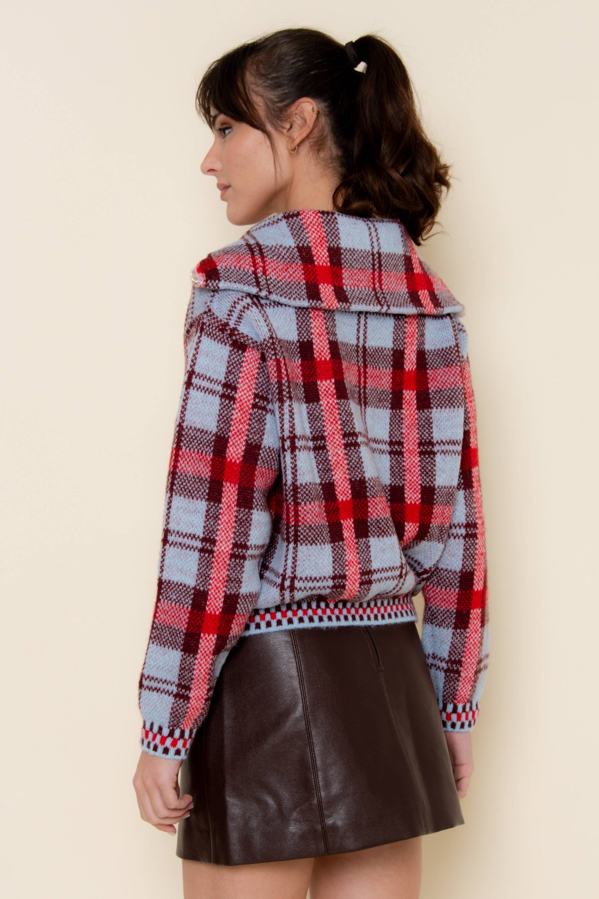 • Plaid knit sweater