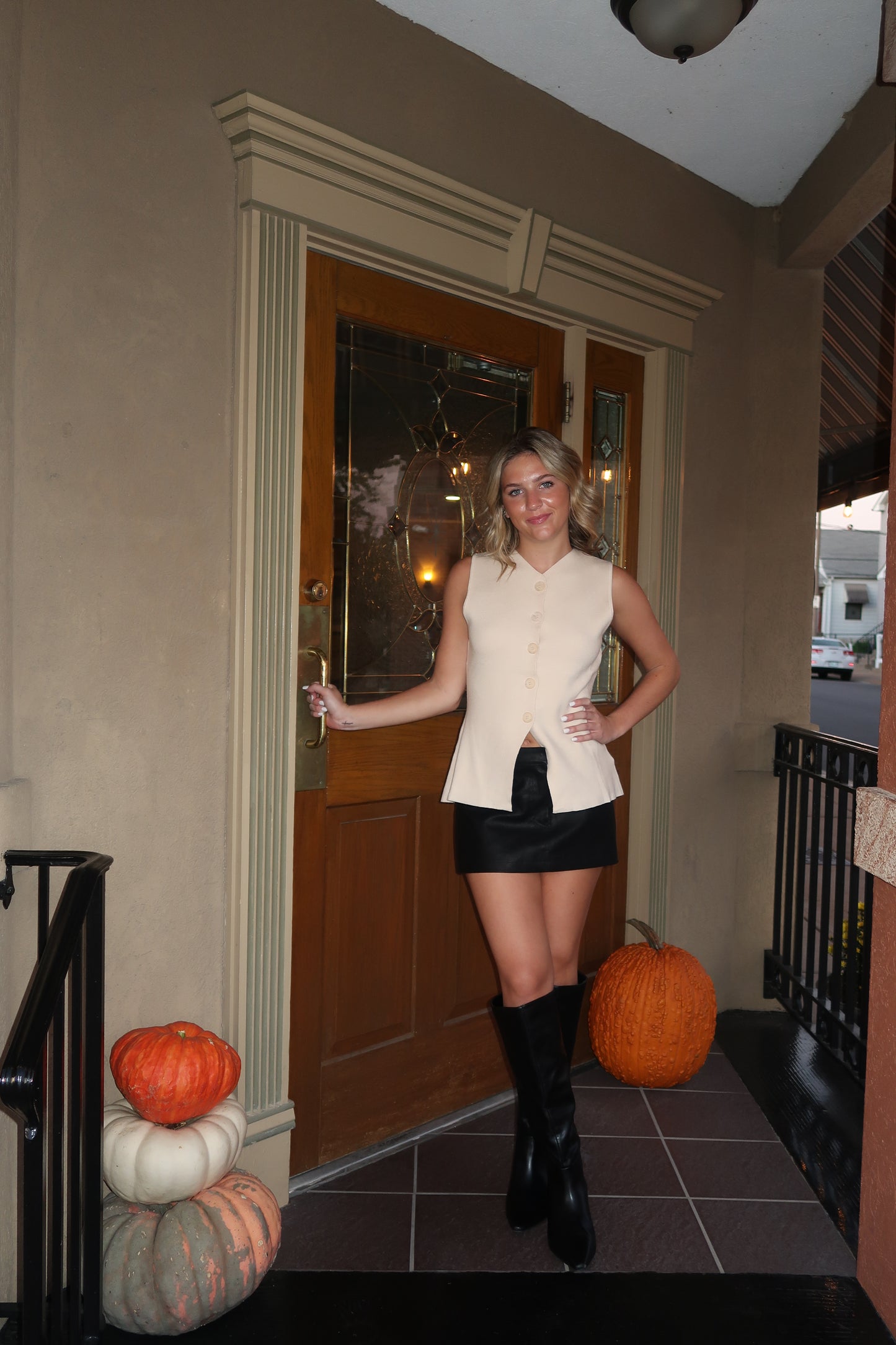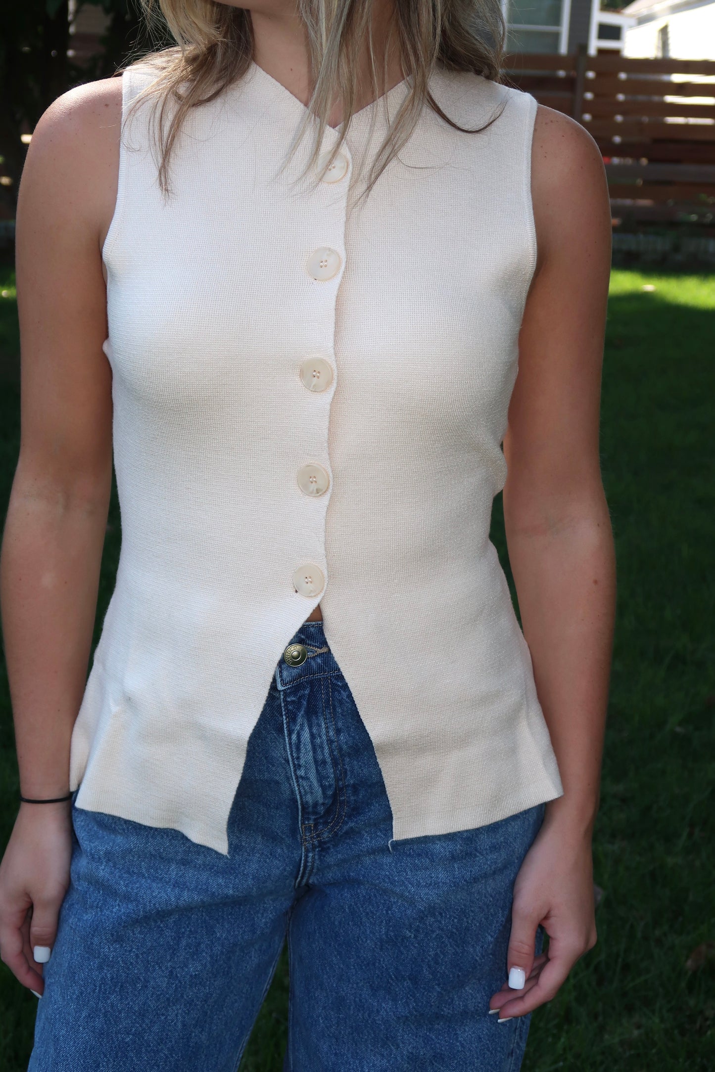 Sweater vest top. V-neck & button closure.